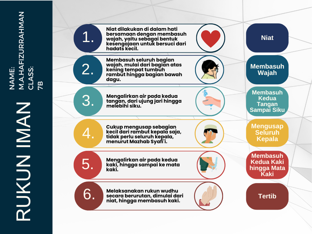 This project is a poster i made in canva and called Pillars Of Wudhu or in bahasa is (Rukun – Rukun Wudhu)